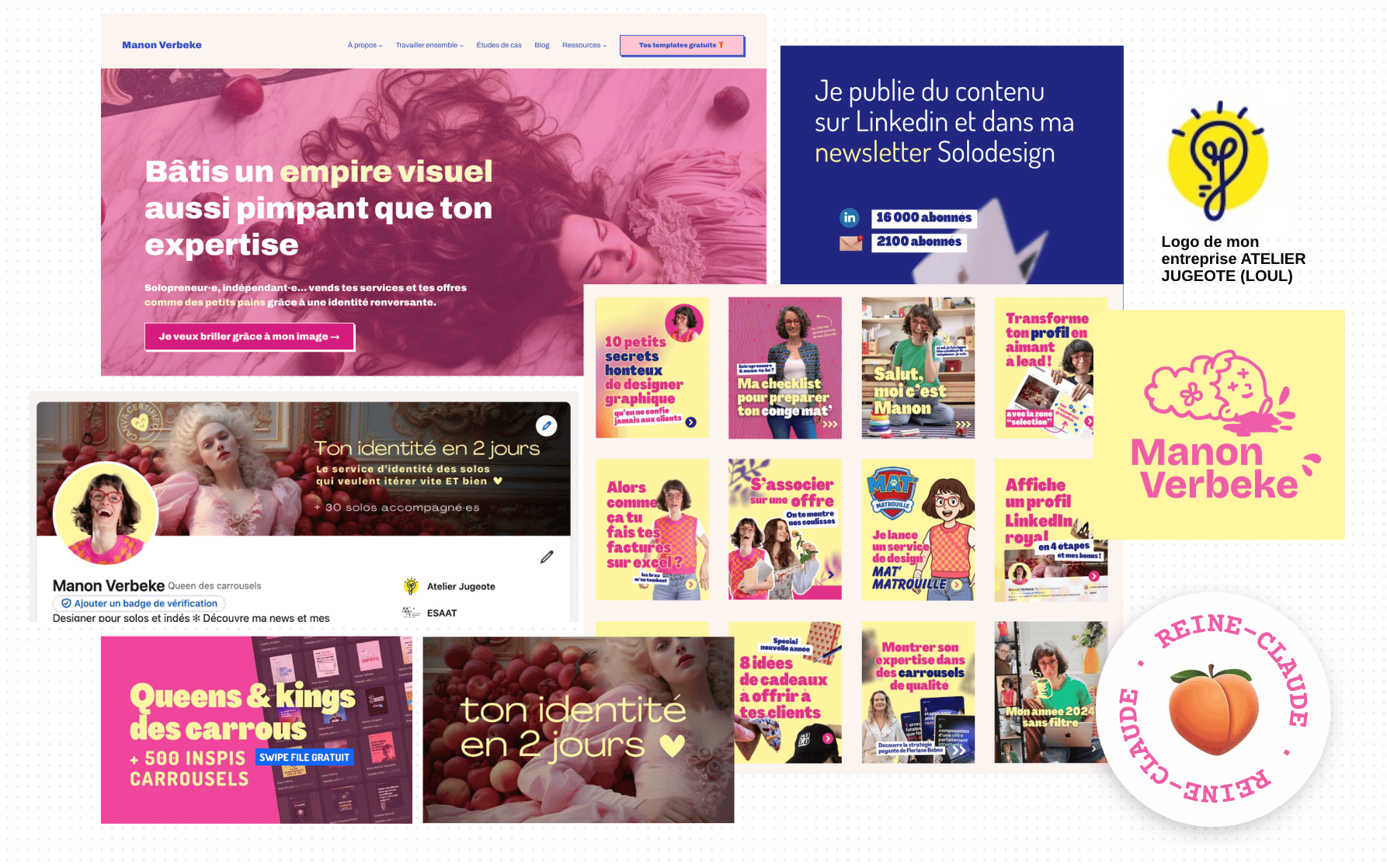 Hello, c'est Manon. Je suis designer et passionnée d'entrepreneuriat et chaque semaine (environ, on va pas chipoter), je te partage des astuces design actionnables pour booster ton entreprise et tes projets & mon avancée dans le solopreneuriat - en toute transparence avec toi et avec une pointe de ch'ti dedans. Des bécots 💛