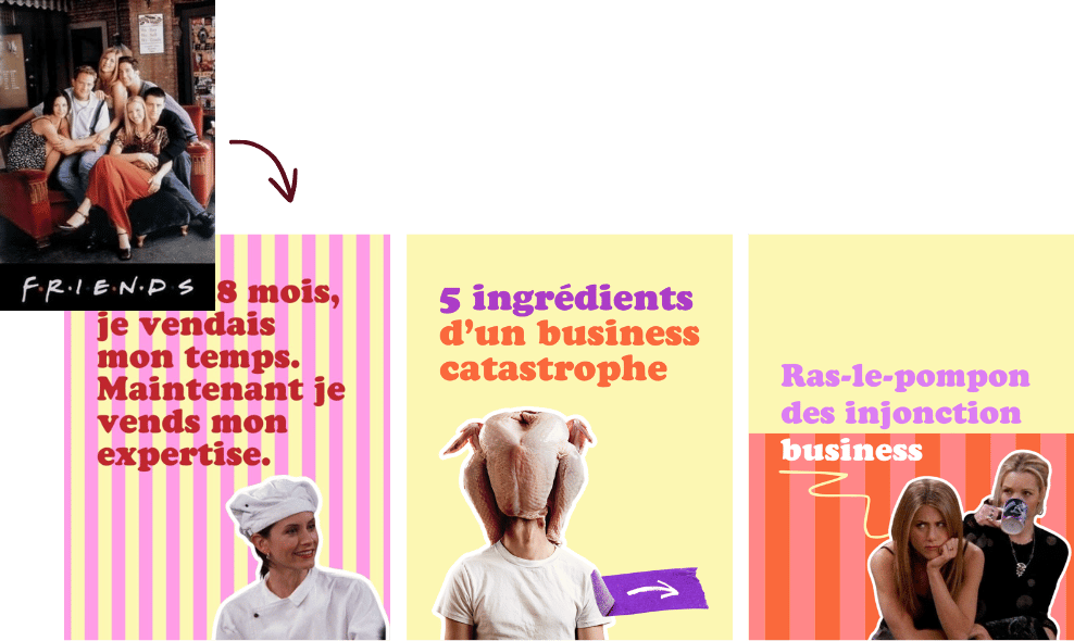 (pssst, c'est exactement le jeu qu'on a fait avec Florie Armbruster pour qui on a intégré dans ses visuels des références à la série Friends ou aux films des années 90' !