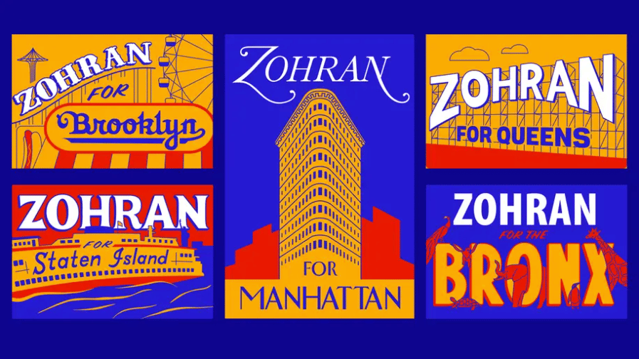 Là où la plupart des candidats jouent la carte "institutionnelle" avec des bleus marine, des rouges républicains et des typos bien sages, Mamdani a fait un choix radical : parler le langage visuel de sa ville.