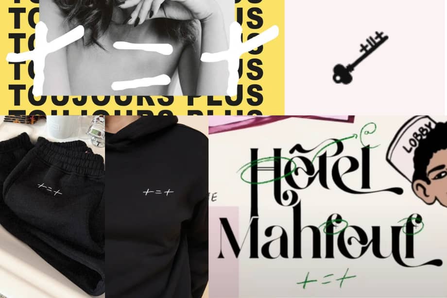 Côté graphique, Léna joue sur un symbole identifiable, qu'elle garde depuis quelques années maintenant : +=+. Un slogan qui aspire à la positivité, et qui s'affiche en signature personnelle sur la couverture de son premier livre Toujours plus, caché en clin d’œil dans le logo Hôtel Mahfouf, ou encore sur une grande partie des articles de la marque. Un peu comme un easter egg, gage de sa personne et amusant à chercher un peu partout. C'est un signe qui rassemble et qui fait que sa communauté se reconnait entre-elle.